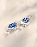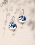 Aros de plata 925 hechos a mano con piezas de porcelanas antiguas y perlas naturales de río. Tamaño de la porcelana 20mm de diámetro. Recibirás la pieza de la fotografía.