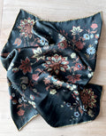 Hecho en 100% seda natural, terminado a mano con delicadeza, este pañuelo de 50x50 cm es tan versátil como atemporal. Suave y ligero, se adapta a todas las estaciones: fresco en verano, abrigado en invierno.
