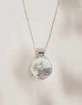 Colgante de plata 925 hecho a mano con una pieza de porcelana antigua. Viene con un cordón de plata de 40, 45 o 50 cm. Tamaño de la porcelana 20mm de diámetro. Recibirás la pieza de la fotografía.