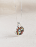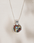Colgante de plata 925 hecho a mano con una pieza de porcelana antigua. Viene con un cordón de plata de 40, 45 o 50 cm. Tamaño de la porcelana 30mm de diámetro. Recibirás la pieza de la fotografía.