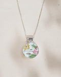 Colgante de plata 925 hecho a mano con una pieza de porcelana antigua. Viene con un cordón de plata de 40, 45 o 50 cm. Tamaño de la porcelana 20mm de diámetro. Recibirás la pieza de la fotografía.
