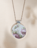 Colgante de plata 925 hecho a mano con una pieza de porcelana antigua. Viene con un cordón de plata de 40, 45 o 50 cm. Tamaño de la porcelana 30mm de diámetro. Recibirás la pieza de la fotografía.